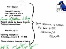 On the 5th, Karyn and I did a 3 mile hike in San Clemente Canyon, and then proceeded to do 6 miles in La Jolla, including hitting Sunny Jim's Cave, and seeing a perfect sunset at Children's Beach. Didn't bother with any pix, but should have!