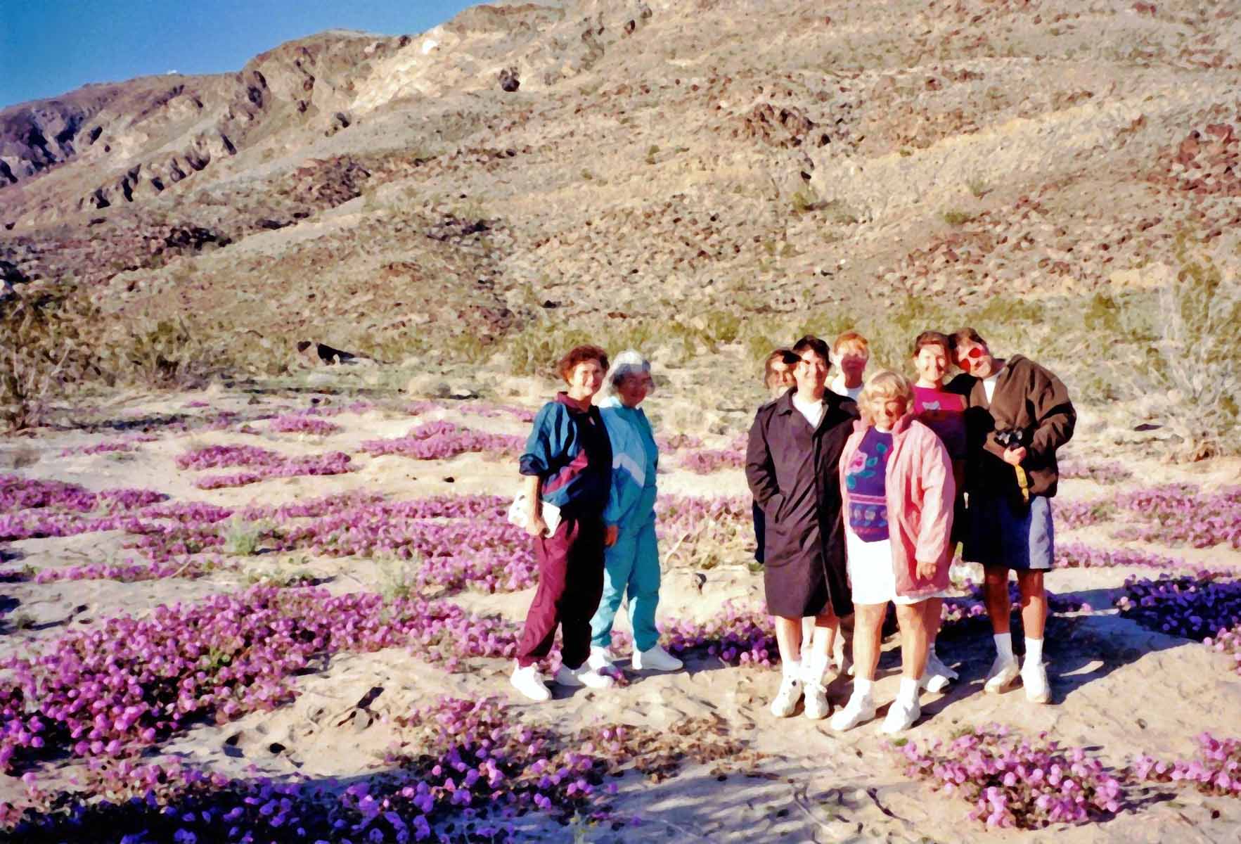 ![]() ![]() On the 14th, Jef teamed with Ken S, but we didn't reach the semis. Fred W and Pete A won in our division. Karyn also played, but didn't make it playing with Sally. ![]() Karyn playing tennis On the 16th, took Karyn and others, out to see some wildflower areas. We took a 3+ mile loop on the Borrego Mtn West Butte. ![]() Karyn