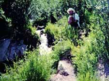 On the 27th, Mari, Karyn and I did the damned dam to dam hike starting at Lake Murray, going as close to the dam there as possible 0.8mi, and making an about face, proceding north to Cowles Peak 4.5 mi, continuing to Piles Peak 6 mi, descending to western side of Kwaaypaay 7.2 mi. We bushwhacked up Kwaaypaay, and descended to Mission Dam 11.5 mi. We then hiked to Mari's house 15.3 mi, as we were hot and tired (it was about 100°). Hike was 7 hours, about 15 miles, and over 3000' vertical up and down - a worthy hike. Karyn took me out to Khyber Pass that night, and we had a great dinner (sitting on cushions on the floor).