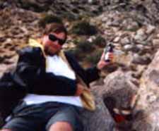 | Attended cannon party on the weekend of the 7th. Weather was cold and rainy until Sunday. Did Astroburger twice. Steve slashed 2 tires on a rock on Sunday. 5 bowling balls, 2 cannons, new cannon carriage was delivered to Steve. ![]() Papa Don sitting at my camp - took mom's truck ![]() Mark, Steve & Papa Don looking over Mark's cannon ![]() ![]() APRIL 2001 CP ALBUM On sunday, the 22nd, mom, me, Betty Minkel, and Harriet went to Mine Wash, old Borego, and Glorietta Canyon. When mom's friend, Ann, came out, we went to Glorietta again. ![]() ![]() Well..... I pulled a muscle again while playing tennis on Friday the 13th, and am a gimp for the rest of this month, I guess. It's better at the end. I played a little tennis on the 29th.