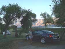 ![]() Kathy at 2nd falls ![]() Kathy walking thru aspen grove We then drove to McGee Creek Campground near Mammoth where we set up camp. ![]() McGee campsite | ||||||