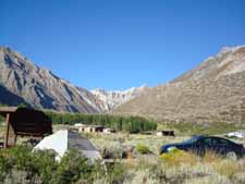 | After another back-breaking night on dad's guest bed, Jef and Kathy headed north. Getting supplies in Palmdale, and setting up camp in Tuttle Creek Campground in Lone Pine (after checking out other possibilities in area). One stop was in Whitney Portal, where Jef got a new coat and Kathy a tank top. Campground cost: $5. |