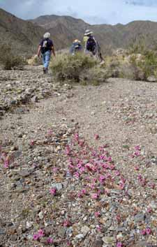 |  Walking past patch of Monkey Flowers
