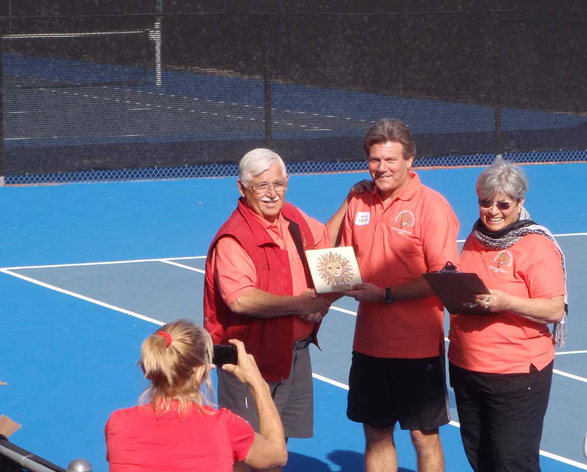 On the 1st, mostly took it easy, but went over to house and replaced 2 automatic valves while new renters moved in. ![]() Front patio thermometer shows frigid temperatures at the start of this year On the 2nd, mostly took it easy. ![]() View from neighbor's living room after we dropped off calendar ![]() Our road decorations this cool evening ![]() On the 3rd, back to work at the office. We had a pretty full schedule for the week. ![]() ![]() On the 4th, another day at the office. On the 5th, worked at the office. On the 6th, worked on and off at the office, as Jef attended tennis clinic in the morning, and snuck out to see about 30 minutes of the exhibition game in the afternoon (featuring French Open doubles champ, Murphy Jenson). ![]() Interesting shading on mountains this day ![]() Cool clouds this afternoon ![]() On the 7th, worked on and off at the office, starting tennis tournament injured (sore knee). Won 2, lost 1 this day. ![]() Fonts Point seemed to be darkened in shadows here On the 8th, continued tennis tournament, winning 2 and losing 1 again. Went to banquet that evening with Kathy & Holley. ![]() ![]() Kathy and Holley keeping warm by fire at the AB Tennis Center banquet ![]() On the 9th, finished last set of tournament, losing, but finished in middle of group with a 32-31 record. Attended award ceremony. ![]() at the awards ceremony ![]() On the 10th, back to work for a long day at the office. Will and Umberto returned to finish the stucco job. On the 11th, after work had a great dinner at Marianne's with Kathy and Chuck and Shelly. Will and Umberto finished the color coat for entire house this day. ![]() Forgot to take pic of interesting clouds this sunset, but remembered later -- this is pale shadow of those clouds On the 12th, back to work -- a long day. Will and Umberto got Walt's old hot tub, delivered it to Sewanee house, removed old one, and put it by dumpster. On the 13th, another long day at the office, finally had a chance (at end of day) to update this journal and tennis newsletter update. Will and Umberto started cutting down 1 tree and doing major trimming on big tree in back. ![]() Old hot tub ready to be cut up and put in dumpster On the 14th, at the end of a long day at the office, met Gary and Jan and we did the draw at our office. For the first time, posted teams and match times online. ![]() At sunset this evening On the 15th, started the tennis tournament with partner Peg, losing 1st in tie-breaker and winning 2nd, but dropped out at that point, letting Sheldon take my place. Had lunch and watched some tennis while at courts. ![]() New stucco colour ![]() ![]() ![]() Stump of dead eucalyptus, on which we plan to put a table top ![]() Holley with her boyfriend, Kyle, before going to a dance this night ![]() On the 16th, what would have been mom's 83rd birthday, Jef skipped viewing rest of tennis tournament and Kathy, Jef & Holley drove to SD and met Stacey at her new apartment. We then met Carol, a realtor, at the Big Rock house, and viewed it. We noticed while there that Kathy's bumper was in danger of falling off, so on way home, got string and duct tape at Walmart and repaired it. ![]() Stacey's new apartment ![]() |
