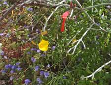On the 21st, worked a long day at the office. Rain hit the valley during the previous night and continued off and on during the day. ![]() Kathy called and made me drive to take pix of this horizontal rainbow ![]() ![]() Rainbow over our WestStar house ![]() On the 22nd, worked another day at the office, but finished before dark, so had time to hike with Kathy in Glorietta Canyon. We just hiked up over the pass into the next wash and back -- getting back to car as it was getting dark. Just before getting back to car, Kathy tripped and avoided serious injury, but did hurt her back in the process. ![]() Some flowers on way up, after sun went behind mountains ![]() ![]() Who's hiding behind that brittlebush?? ![]() Kathy hiking up towards pass ![]() ...who IS that??? ![]() This ocotillo grabbed Jef - looks pretty sexy... ![]() ..yup! ![]() ..uh, oh! it's got Kathy! ![]() hey, wait a minute! I know her!! ![]() ![]() ![]() Goldenhead? ![]() Wooly daisy ![]() close-up ![]() This is the only native fern in the valley On the 23rd, another long day at the office. ![]() Weird clouds at the Mall this evening ![]() Possible horizontal tornado in this cloud? ![]() ![]() On the 24th, noticed it had rained the night before. An easy day for Jef at the office, but Kathy not feeling too well, so cancelled half her patients. On the 25th, after working half a day at the office, Sid drove out and we loaded up mom's old truck with a couch and other stuff. We all drove to Santee and set up camp in the new house. Altho we saw rainbows this morning, we did not get much precipitation this day. ![]() This rainbow lasted a couple of hours this morning! ![]() ![]() On the 26th, Sid came over to house and we knocked out a hole in the wall (where the old door was recently filled). We bought a new door, doorknobs and some other stuff. Sid also did some weeding and mowed the lawn. We could not complete cutting out the door, lacking a saws-all. That evening we went out to dinner with Stacey and her friends at Michaels. When we got home, we celebrated with a (belated) birthday cake, made by Marianne. ![]() Before cutting out door ![]() Our new camping bed ![]() Note camping table in dining room ![]() Eating an excellent meal at Michaels ![]() Stacey's birthday cake On the 27th, Sid came over again -- bringing a Saws-all, and we installed the new door. Also did some other work on the house. Afterwards, Sid and Jef toured the park behind the house, finding where teenagers hung out on a slab high on the hill behind our house. Sid stayed for dinner, after his ex failed to buy him a birthday dinner the night before. We cooked our first meal at the new house. ![]() After door was installed (no trim yet) ![]() Very of house from teenager hangout ![]() Sid on hangout slab ![]() View of trail along Big Rock ![]() Jef pointing out new house ![]() View from last house on Big Rock ![]() Our mowed lawn ![]() Creek going thru park ![]() ![]() Note wall buttress being undercut by creek ![]() Tennis courts seen from the hangout On the 28th, we packed up and drove home, doing a little shopping on the way out. Jef snapped a few pictures near Henshaw of the fields of flowers on the way back: ![]() ![]() ![]() On the 29th, back to work -- starting a very hectic 4 day week. On the 30th, another long day at the office. On the 31st, Kathy had a long day of mostly homecare patients. Jef got to catch up on paperwork. When Kathy was coming home, she stopped for a snake in road in front of driveway. It was under her car, so she had to stop and protect the gecko the snake was after. ![]() Snake didn't leave area -- it wanted gecko in Kathy's hand ![]() Snake appeared to be non-venomous ![]() ![]() ![]() ![]() The gecko was later released | |||||||||||||||||||||