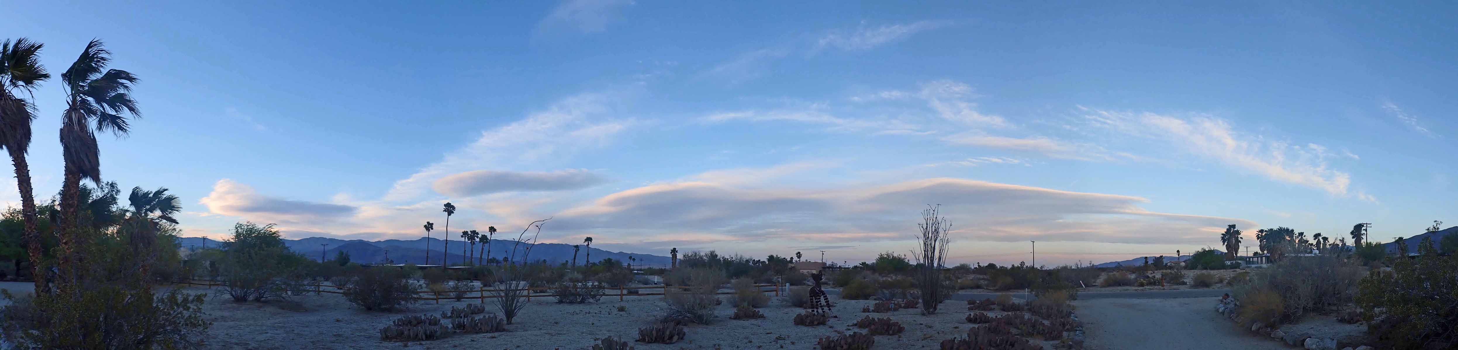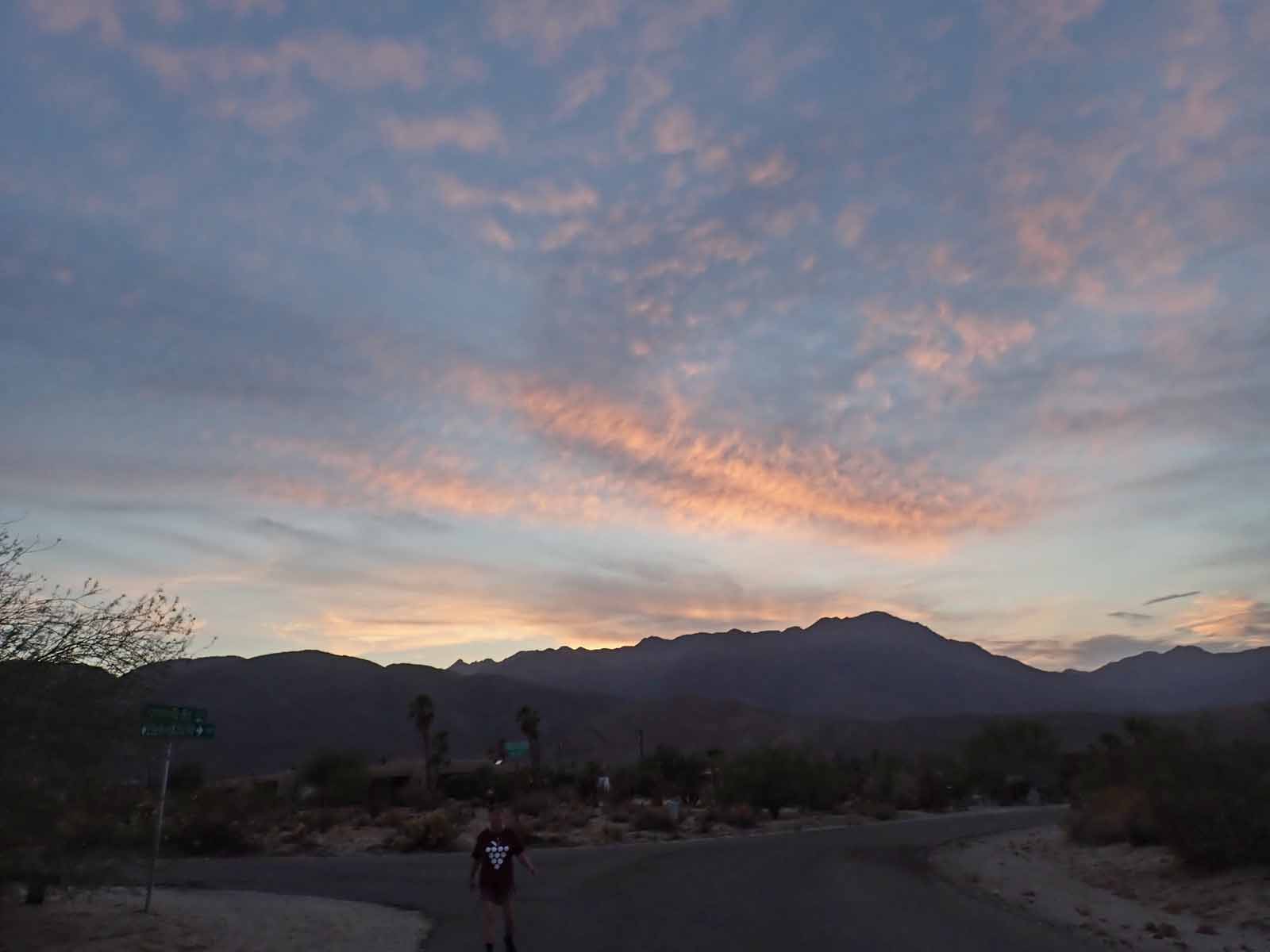 ![]() ![]() Colours faded shortly after this panorama On the 21st, back to work a very long day at the office on this cool day with some wind and a high in the mid 70s - very unusual for this time of year in Borrego. On the 22nd, took it easy at home until going to office to do some work this afternoon. Kathy broke into one of the gifts Stacey sent her and shampooed the doggies with cucumber melon soft soap while taking his shower this afternoon. On the 23rd, mostly took it easy at home. Jef did some chores in back yard while Kathy went to Pam's to get her hair done. ![]() We took doggies around the block this afternoon ![]() ![]() One small chore Jef did was help install this decorative windbreak for the guesthouse On the 24th, Jef drove Kathy to MD in Escondido. On way back, had lunch again at the Akai Hana. ![]() Roadrunner crossing our front yard ![]() Stopped at road construction in Valley Center by this sunflower field ![]() Kathy at sushi ![]() Original sign for sushi restaurant was Shien of Osaka - they just turned it around and slapped on "Akai Hana" on other side On the 25th, back to work a very long day at the office. Jef got treated at the end of the day. ![]() Clouds late morning this day ![]() Near sunset ![]() Walking around the block (looking for Kathy) Jef noticed some sunset colour starting ![]() ![]() Getting pretty good ![]() ![]() ![]() Arriving home ![]() On the 26th, after a short day at the office, Kathy, Jef, & Miguel played a little tennis at the new park with patient Forrest, who hadn't played in 12 years. ![]() Clouds this morning ![]() Getting ready to play on new court at new Borrego Springs Park for 1st time ![]() Forrest giving Miguel (who has never played tennis) tips on how to warm up ![]() Kathy ![]() Kathy returning ball ![]() Kathy flubbing return - conditions were difficult due to the wind ![]() Forrest & Miguel leaving ![]() Kathy found an abandonned blanket that she took home and also the only trashcan we found in the park next to the playground On the 27th, a moderately long day at the office. Jef got treated at the end of the day. On the 28th, after a long day at the office, Kathy took Jef to Carmelitas for dinner --- but Carmelitas closed early (they said open 'til 8 and when we walked in at 7:50, they already put up the closed sign -- so then we went across the street and dined at Pablitos. ![]() Panorama of clouds this afternoon ![]() Starting to get some sunset colour ![]() ![]() David & Kathy leaving - David walking into the sunset as he had tendered his resignation (after next week) ![]() ![]() Kathy at Pablitos ![]() We sat by the fountain ![]() Our dinner On the 29th, took it easy at home all day. ![]() Irises blooming in raised garden this morning with kale doing good On the 30th, Jef worked on pix, & uploaded them after doing some work at the office. ![]() Sewanee carport roof after Hector peeled it off reveals some rotten plywood ![]() Yuridia did translation as we mapped out a plan to fix roof ![]() Hector will be painting, as well as roofing On the 31st, took it easy again most of this Memorial Day. Jef started looking for pix for the occasion in dad's album. Went over to Morgans and hung out at their pool this afternoon, staying until almost midnite. ![]() Walked doggies around circle this afternoon - Kathy checking for seeds for this Baja yellow paloverde ![]() Panorama at pool of building sunset ![]() Adam joined us in the pool ![]() Sunset colours starting ![]() Jef & Kathy from underwater ![]() Sunset pic ![]() Adam took this pic ![]() Pam got in this pic ![]() Weird underwater pic ![]() ![]() Underwater pic with some sunset colour ![]() ![]() Sunset at its peak ![]() Adam in animated conversation with Kathy ![]() Vivien came by and swam laps. Adam did as well, but used flippers ![]() Jef tried with flippers, but his legs are so messed up, he got a cramp within 10' and gave up ![]() Kathy & Pam this night | |||||||||||||||||||||