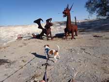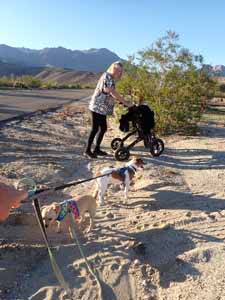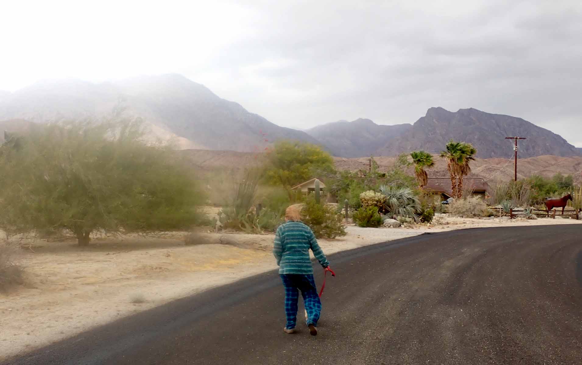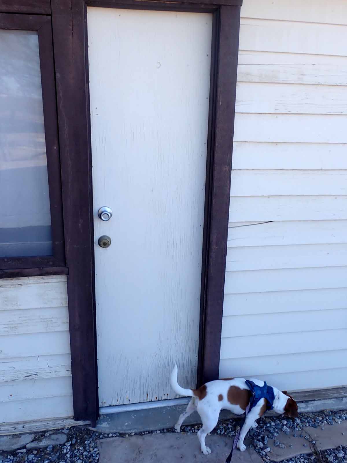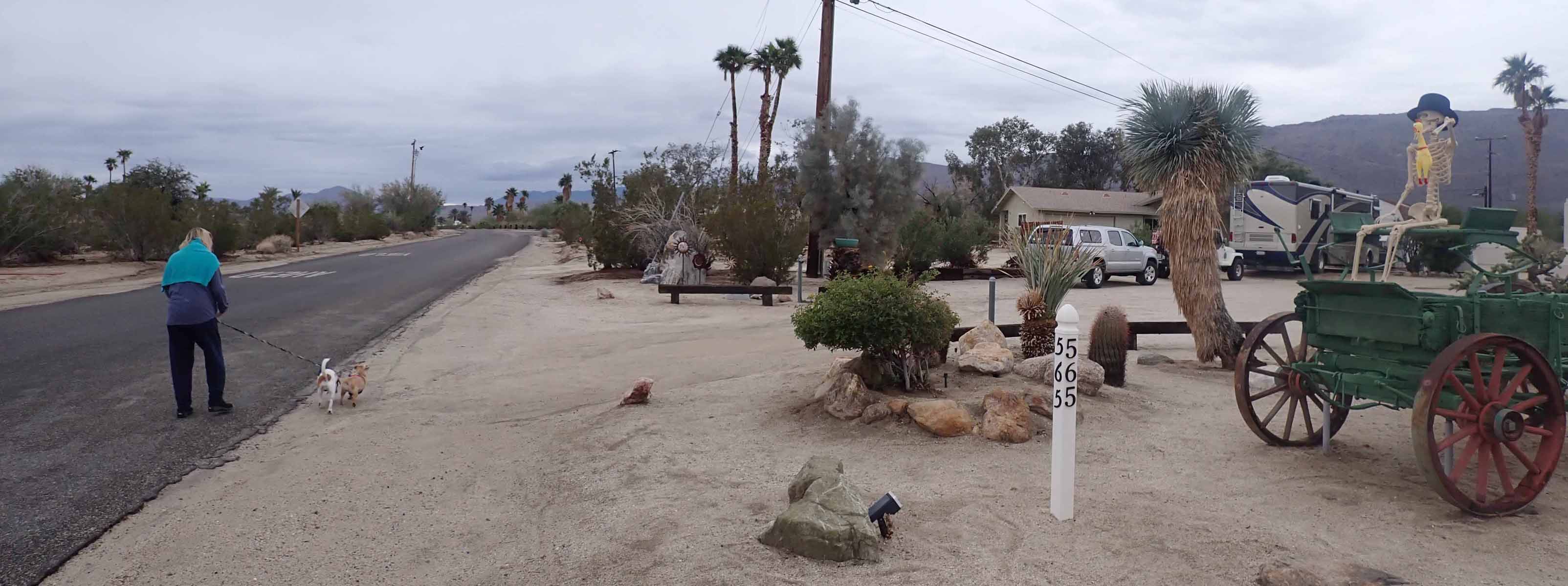 On the 1st, drove Kathy to MD in Escondido in Jeep(as Camry was still in body shop) & did some shopping on the way home. ![]() Puppies interested in Kathy's dinner ![]() On the 2nd, Jef did a lot of clean up work in the garage. ![]() Noticed smoke coming from the SW ![]() This was the Scissors-2 fire, as Scissor's Xing had again caught fire ![]() ![]() ![]() Some clouds at sunset this evening ![]() We had burgers cooked on bar-b-q this evening On the 3rd, continued cleaning the garage. ![]() After mostly cleaning up table top ![]() Found a dead tarantula wasp while cleaning ![]() Sunset this evening ![]() Cleaned up mess under window, temporarily putting stuff on table top On the 4th, had to cancel 3 office patients, as Kathy was not up to working this day. On the 5th, we had 2 long blackouts this day, so set up generator in the morning & Kathy watched Star Trek (original series) until power came back on. Power again went down this evening, but we sat outside and never connected the generator. ![]() Generator set up ![]() Got TV & DVD working during blackout ![]() Sunset this evening ![]() Sitting outside during blackout ![]() ![]() ![]() ![]() On the 6th, mostly took it easy & did chores at home. On the 7th, mostly took it easy & did chores at home, as Camry is still not ready, but should be ready Monday. On the 8th, mostly took it easy at home. Walked Kathy & doggies on a slow loop around the circle, doing 2 spurs, so about 1.1 miles. ![]() Puppies on walk ![]() Pepper riding on Kathy's walker On the 9th, checked out Sewanee house. That afternoon took Kathy & doggies to Old Borego History Preservation Day for about half an hour. ![]() Meter check at Sewanee - as SDGE said I used 91kwh in 1st 20 days when only fridge was on ![]() Looks like another main water leak to fix ![]() Kathy & Pepper in living room in oldest building in Borrego ![]() Panorama of living room ![]() Looking into bedroom - another bedroom is beyond this ![]() Bathroom ![]() Northernmost bedroom ![]() Another bedroom ![]() And another bathroom - note: no halls - you must go thru bedrooms/bathrooms to get to other rooms ![]() Kathy in the kitchen ![]() Kitchen panorama ![]() Looking back into living room from kitchen ![]() Daisy by the "pool" ![]() And in the pool ![]() Kathy & Pepper did not enter the pool ![]() ![]() Note the double roof design ![]() Narrow door! ![]() Panorama inside the old store ![]() Pictures from old History Preservation Days with some of the pioneers - Denny was at this event, here's a pic of him from maybe 40 years ago ![]() ![]() ![]() ![]() ![]() ![]() ![]() ![]() I rented a house in Tubb Canyon circa 1970 from one of the Sellis's and Norri Bakko is the realtor who turned me on to it ![]() ![]() Phil Brigandi wrote a couple of books and may have been instrumental in History Preservation Day - he passed away 59 years young about 10 years ago ![]() Visitors watching promotional Borrego video from the 50s ![]() Apparently cabins were rented here in the past ![]() Old Borego Store sign ![]() Outside the store ![]() Looking down (what might have been called Main Street) to northern suburbs in Old Borego ![]() Kathy walking towards the "northern suburbs" ![]() Old garage ![]() Sign over old garage ![]() This old mobile home may have been from the '40s ![]() Another cabin ![]() Looking to northern suburbs ![]() Kathy & Pepper on front deck of this cabin On the 10th, Camry is still not done, so mostly hung out at home. ![]() We noticed that when roads end, there is a sign saying "Entering County", as is the case at this spur (Lightning) |