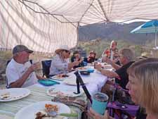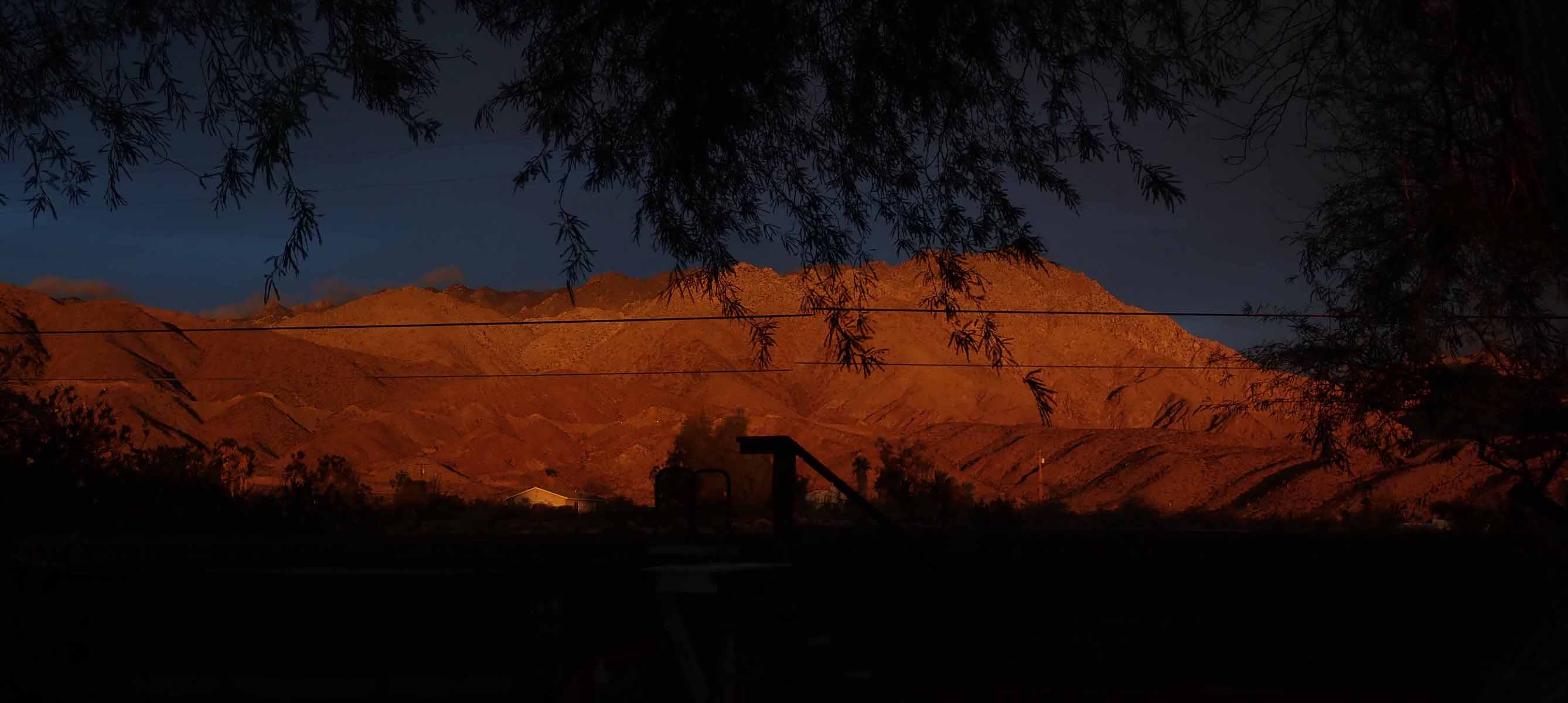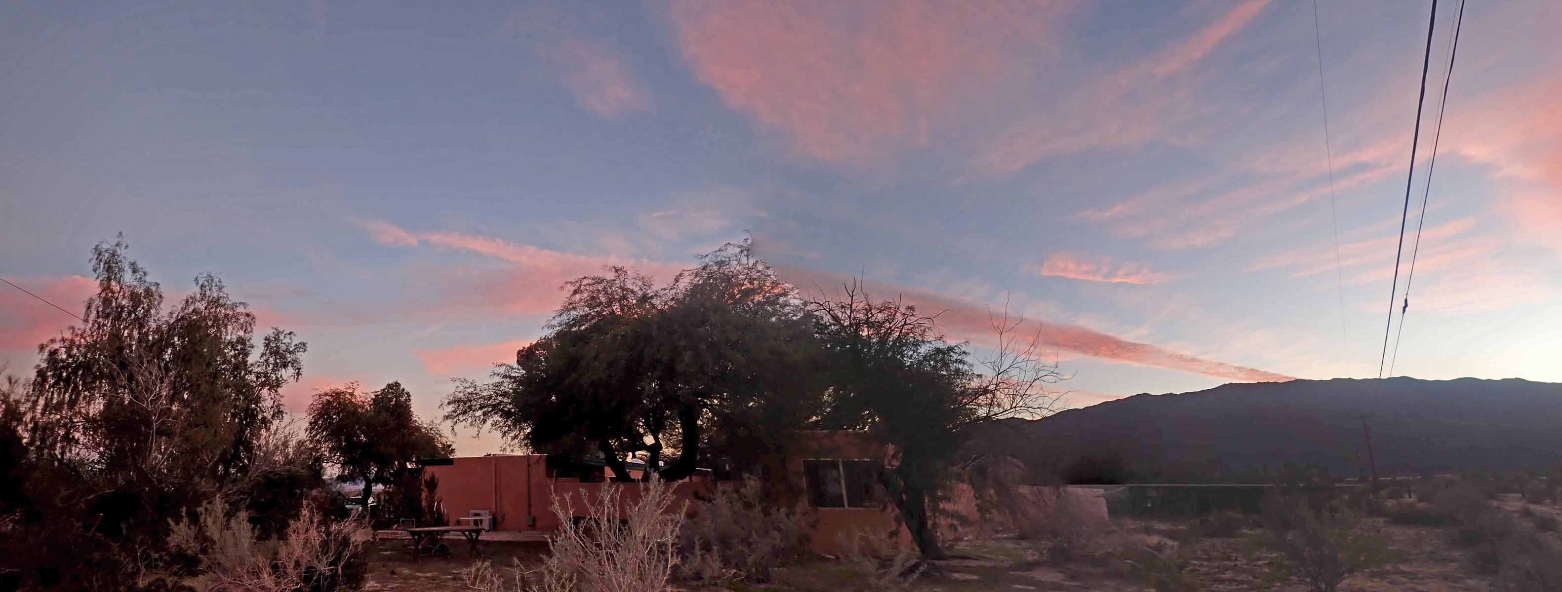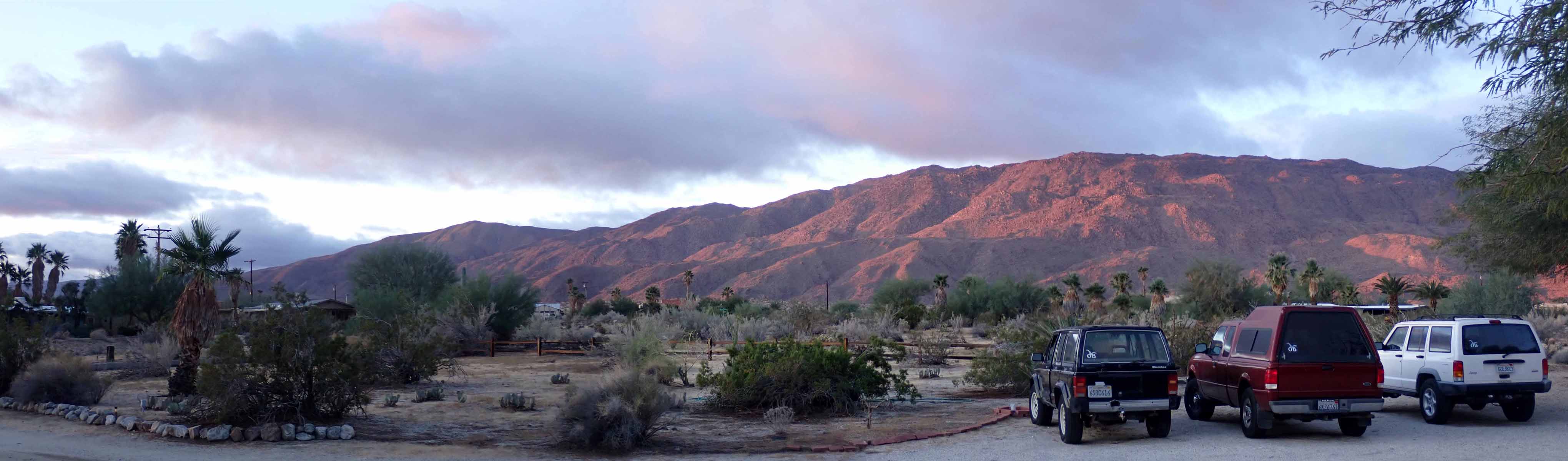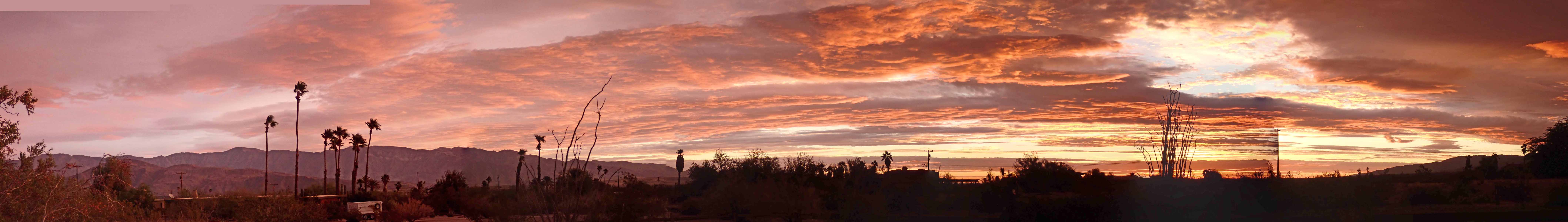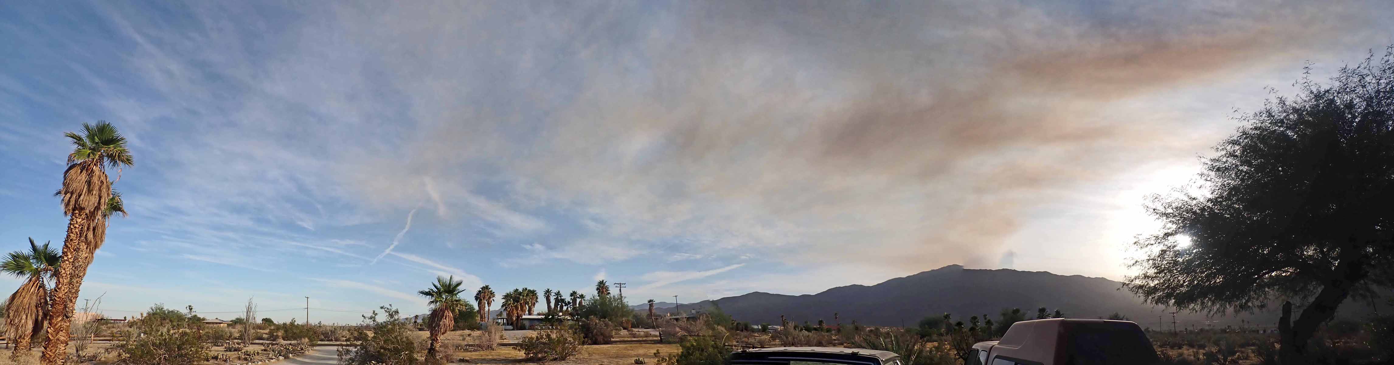 On the 1st, mostly took it easy at home, but did go over to Sewanee with Dave and cut down a big dead branch from Paloverde. Dave replaced rece. Jef worked on old pictures. On the 2nd, Kathy had a full day at work (by full day, I mean about 5 hours... her max these days). Dave came over and we headed to Sewanee - he replaced recepticle for hot water heater, and this fixed that problem. Also got stuck valves working. Jef did some trimming while there. ![]() Panorama of sunset this evening ![]() ![]() Meter still heading north ![]() ![]() ![]() Kathy kicked a mushroom and it exploded sending red powder to cover nearby ground ![]() On the 3rd, mostly took it easy at home working on old pix. ![]() Bunch of palm fronds got blown off nearby tree in heavy early morning wind ![]() ![]() Mushroom residue from Kathy kicking it prior night On the 4th, Kathy had another full work day. Dave came over and we did some more work at Sewanee: Dave adjusted hot water heater, looked at possibly repairing Charles' Weber grill (cheap metal used prevented dial from working), and replacing overflow container on black Jeep. Also he thinks brakes will work again after driving the Jeep more. Jef did more trimming & burning at Sewanee. ![]() Commencing burn ![]() Noted bees were attracted to sap in paloverde - also noted before leaving that a woodpecker is responsible for holes in the trunk ![]() Smoke is darker when there is water in what is burned ![]() Palm fronds put out a good flame ![]() On the 5th, Kathy mostly took it easy at home. Jef walked to PO, going the usual 4.5 mile round trip. ![]() Some brittlebush getting an early start to blooming ![]() At the first pass, note the green ocotillos ![]() Panorama at the high point before beginning descent to town ![]() Panorama well into the descent ![]() Bob has xmas decorations now ![]() On the 6th, drove Kathy to MD appointment in Escondido, then drove down to Banbu Sushi to meet with Holley & Alvaro, before showing them the job ahead as they want to tackle rennovations at the Big Rock house. ![]() Hector had started cleaning off and re-painting the roof at WStar house ![]() Panorama at Banbu Sushi with Alvaro, Holley & Kathy ![]() All of us at our table ![]() Panorama of back yard |
