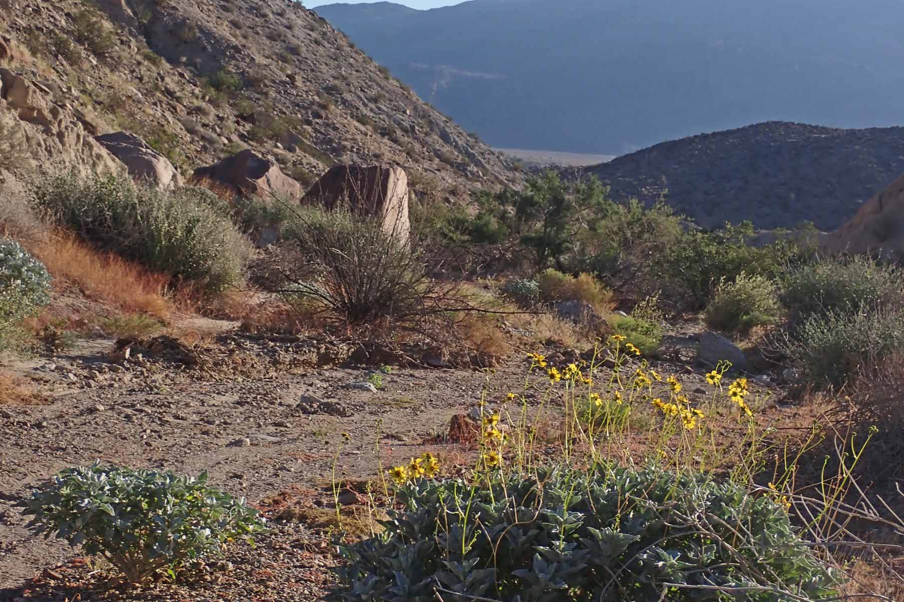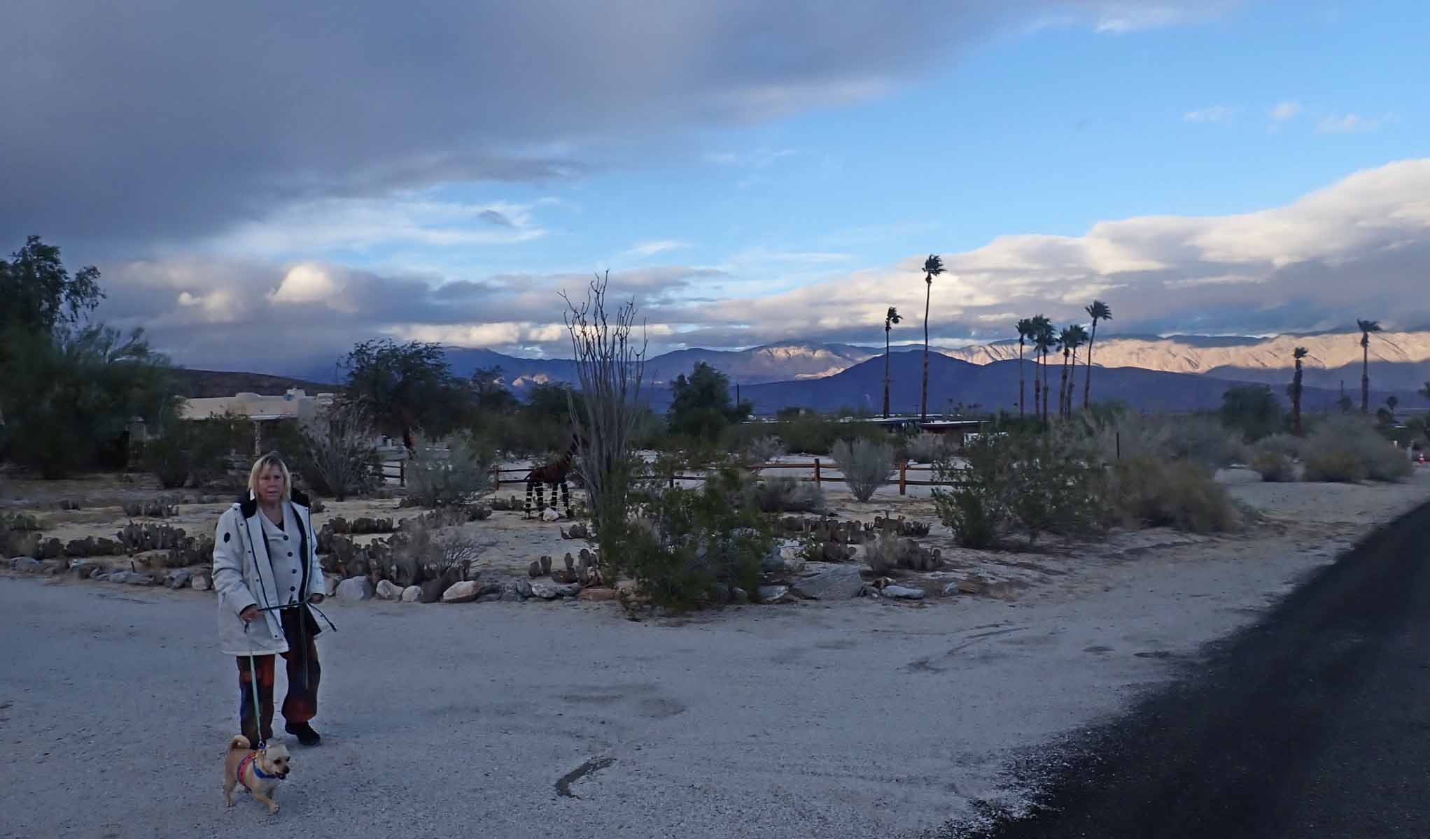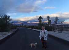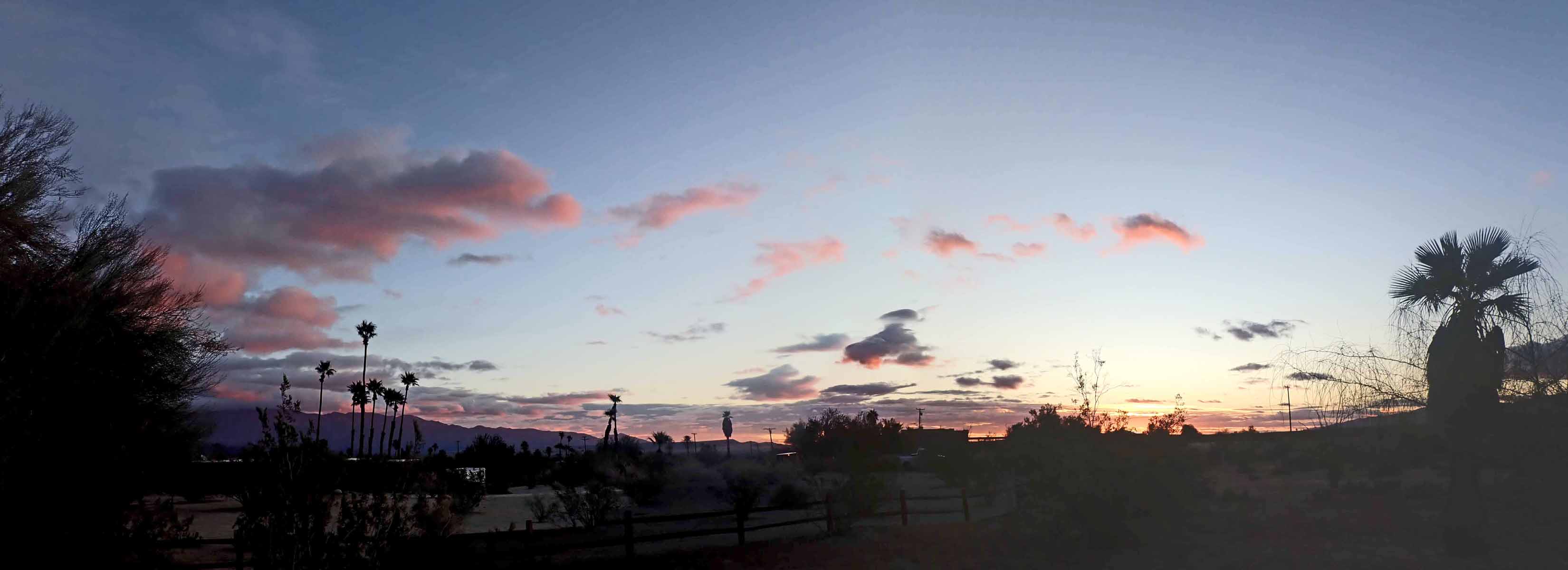 ![]() Rock daisy bloom ![]() Healthy stand of galleta grass ![]() Some chinchweed that perked up after last storm On the 10th, Jef took Kathy's car to dentist in SD for heavy duty work - new crown and implant (which was painful for days afterwards), doing some shopping on the way home. On the 11th, Kathy did another full day at the office. Jef again walked to town - this time to buy groceries, pick up meds, and get mail. ![]() Hector is doing substantial trimmin of this mesquite along with other yardwork and the roof ![]() Windmill vine in bloom ![]() Vertical panorama from my feet down steep hillside and to Font's Point near the top of the hike ![]() Barrel cactus grown straight up, but inclined 45° to the steep hill ![]() Panorama with trail near middle ![]() 1st poppy I've seen since rains ![]() Desert hibiscus ![]() Jef is burning palm fronds blown off tree at WStar in last windstorm about a week prior ![]() Some varmint - probably a coyote - dug this hole in search of a rabbit or something ![]() View looking out back window with a "lawn" in the foreground On the 12th, went on a 4 mile (2.5 hour) hike with Kathy & puppies. ![]() Kathy tried to have Pepper pull her, but steering was a problem, and her walker went off into the shoulder on this test run ![]() Turn around point of hike at the edge of the Methodist parking lot ![]() This depression is filled with verdant rock daisies and new brittlebush ![]() Sky has recently been filled with contrails On the 13th, Jef & Kathy went to see Petty Party (&Gypsy) concert at the PAS. It was pretty great! ![]() Gypsy performing ![]() Kathy says she does sound just like Stevie Nicks ![]() Artsy pic ![]() Fresco ![]() Tom Petty knockoff was similar to Tom On the 14th, we stayed home all day & made a big batch of Kathy's tuna macaroni salad. ![]() Sunrise this morning ![]() ![]() On the 15th, mostly took it easy at home, but we took puppies on a 1h 12m hike (not much more than 2 miles, as Kathy was on her walker). | |||||||||||||||||||||