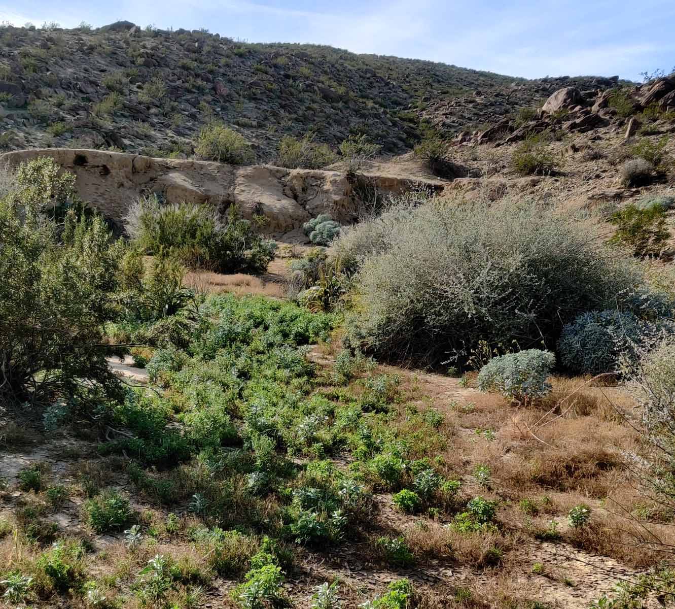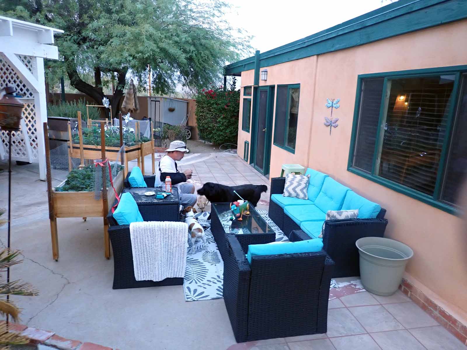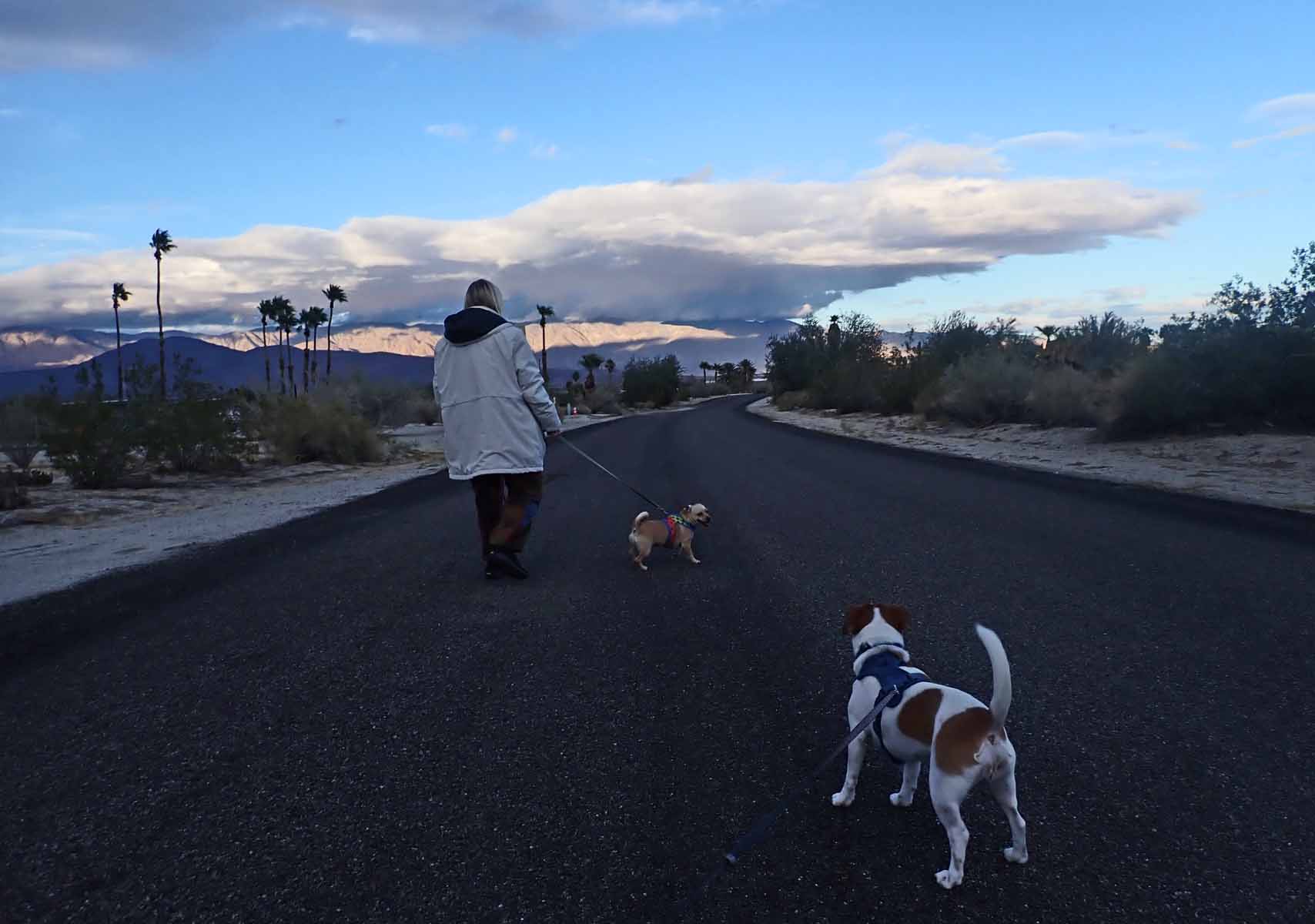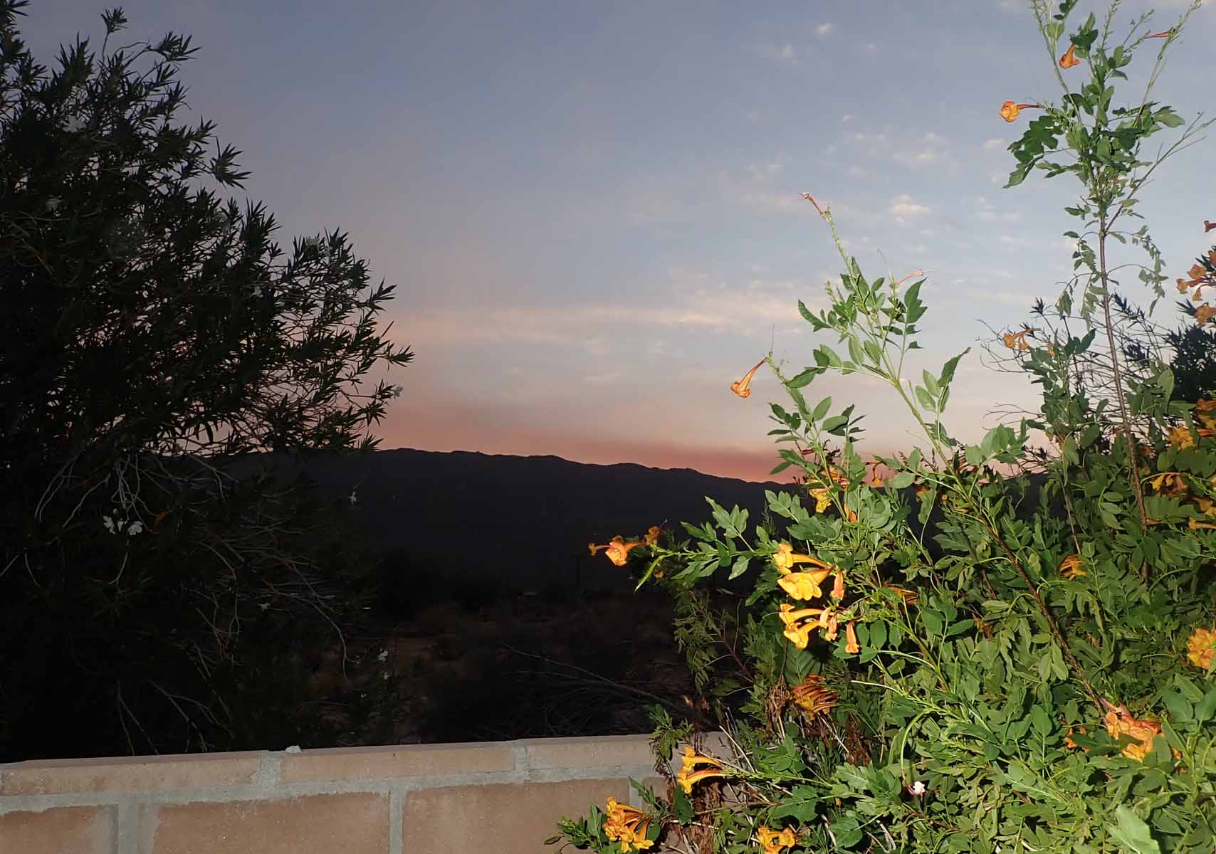 ![]() Rock daisy bloom ![]() Healthy stand of galleta grass ![]() Some chinchweed that perked up after last storm On the 10th, Jef took Kathy's car to dentist in SD for heavy duty work - new crown and implant (which was painful for days afterwards), doing some shopping on the way home. On the 11th, Kathy did another full day at the office. Jef again walked to town - this time to buy groceries, pick up meds, and get mail. ![]() Hector is doing substantial trimmin of this mesquite along with other yardwork and the roof ![]() Windmill vine in bloom ![]() Vertical panorama from my feet down steep hillside and to Font's Point near the top of the hike ![]() Barrel cactus grown straight up, but inclined 45° to the steep hill ![]() Panorama with trail near middle ![]() 1st poppy I've seen since rains ![]() Desert hibiscus ![]() Jef is burning palm fronds blown off tree at WStar in last windstorm about a week prior ![]() Some varmint - probably a coyote - dug this hole in search of a rabbit or something ![]() View looking out back window with a "lawn" in the foreground On the 12th, went on a 4 mile (2.5 hour) hike with Kathy & puppies. ![]() Kathy tried to have Pepper pull her, but steering was a problem, and her walker went off into the shoulder on this test run ![]() Turn around point of hike at the edge of the Methodist parking lot ![]() This depression is filled with verdant rock daisies and new brittlebush ![]() Sky has recently been filled with contrails On the 13th, Jef & Kathy went to see Petty Party (&Gypsy) concert at the PAS. It was pretty great! ![]() Gypsy performing ![]() Kathy says she does sound just like Stevie Nicks ![]() Artsy pic ![]() Fresco ![]() Tom Petty knockoff was similar to Tom On the 14th, we stayed home all day & made a big batch of Kathy's tuna macaroni salad. ![]() Sunrise this morning ![]() ![]() On the 15th, mostly took it easy at home, but we took puppies on a 1h 12m hike (not much more than 2 miles, as Kathy was on her walker). | |||||||||||||||||||||