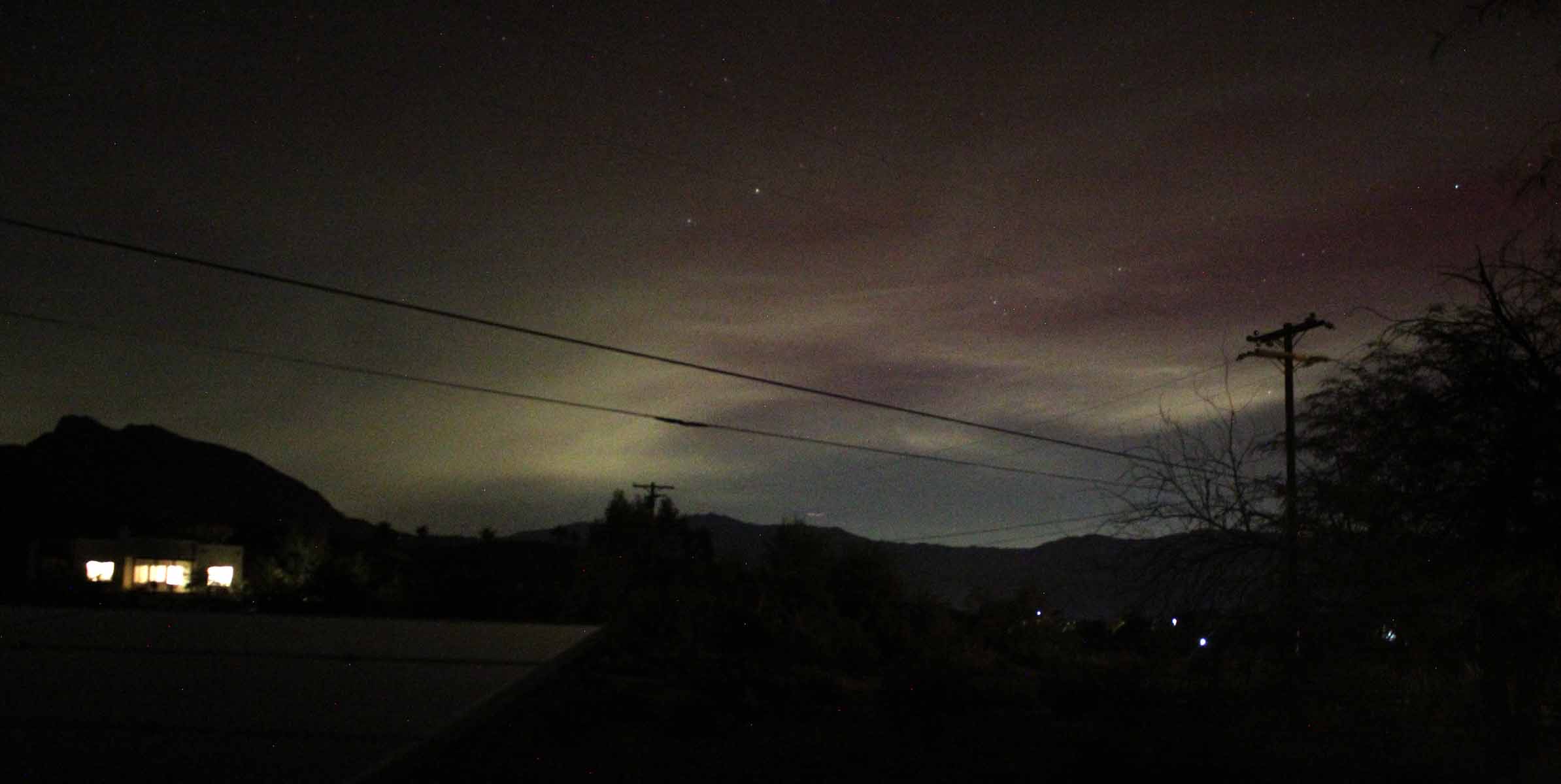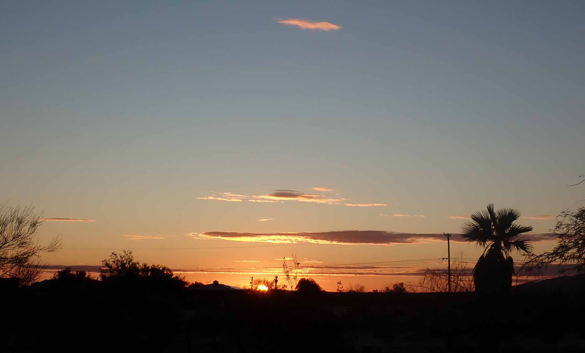 On the 11th, Kathy did 2 patients at the office. ![]() Dave stayed for dinner this evening ![]() Aurora Borealis was visible with camera this evening ![]() ![]() ![]() ![]() On the 12th, Camry was finally ready, so Jef got a ride with Dave to Poway, picked it up, and shopped on the way home. On the 13th, Kathy had 2 patients at the office. Jef walked to town, helped out Kathy some and did a couple other chores. ![]() Meter at this time ![]() Starting walk home, noticed small cloud - they are predicting a big storm coming in, perhaps this is the start ![]() Trail was obscured by erosion, such as this wash cut ![]() Grasses along trail ![]() Top of first hill ![]() Nearing top ![]() At the top - most of this grass is dead (not protected from wind, like in lower slopes) ![]() Chinchweed still blooming in this little draw ![]() Before descending to main wash ![]() Looks pretty green down there ![]() Erosion may make this a problem area ![]() Arriving in main wash ![]() Some chuparosa blooms ![]() ![]() Blooming brittlebush ![]() Desert hibiscus also blooming ![]() Giant patch of windmills ![]() ![]() Passing rotary trough ![]() Healthy cheesebush ![]() Rain washed away this old couch that had been a minor obstacle, pushing it off to the side On the 14th, Jef helped Kathy make a batch of spaghetti sauce. ![]() Nice sunrise this morning ![]() ![]() ![]() ![]() Looking at red mountains & clouds behind house ![]() Camry is now fixed! ![]() Even the left side ![]() Back yard during this sunrise ![]() Plants are doing okay ![]() Montezuma grade in early morning light ![]() Rain shaft towards Coyote Canyon On the 15th, woke up to rain. Stayed home and soaked up water flooding our sunroom. ![]() Noticed this baby garter snake in sunroom ![]() Picked up with tongs and tossed into front yard ![]() Soaking up flood waters in sun room ![]() Daisy wondering what this wet stuff is ![]() Sunset this evening ![]() ![]() On the 16th, mostly took it easy at home doing chores. Kathy & Kym went to Red O for lunch. ![]() Sunrise this morning ![]() ![]() ![]() ![]() Woke up with no water pressure in house - these guys were probably fixing a leak ![]() One of Stacey's drawings from 20+ years ago left at West Star house ![]() Water pressure returned & Jef noticed SOMEONE had used the hose and left it on full blast ![]() Water reached into neighbor's property ![]() Walking over to see what water district had done, took this pic of a raven ![]() Water leak was on shoulder in front of next 2 neighbors ![]() ![]() Must have been a little waterfall going down towards neighbor 3 houses down ![]() Water crossing neighbor 3 houses down ![]() Water crossed neighbor 4 houses down an continued to main wash, but never made it all the way to Tilting T ![]() Still have blooming chinchweed ![]() Kathy & Pepper starting walk ![]() ![]() Saw a little rainbow over toward Santa Rosas On the 17th, mostly took it easy at home. Jef worked on old pix & then walked about 4 miles to base of ridge in Dry Canyon in 74 minutes. Later we walked doggies about 2 miles around the circle. ![]() Sunrise this morning ![]() ![]() Meter is heading north - probably due to hot tub ![]() Walking up Wagon noticed and took this shortcut dirt road to Bar O ![]() 2 miles from house took this panorama shot looking east to water tank ![]() ![]() Looking back to ridge I was on - top is height of road cut-out on Montezuma ![]() Wash was blocked here for recharge basin for water district ![]() Discovered this track leading into Dry Canyon ![]() Weather at the Mall later this day On the 18th, Kathy resumed work with 3 patients this day. On the 19th, did chores at Sewanee and WStar houses. ![]() Cut some branches from this paloverde and brought palm frond over to burn barrel, but matches didn't work, so no burning this day ![]() Raining in Hellhole ![]() Thunderstorm to the east |