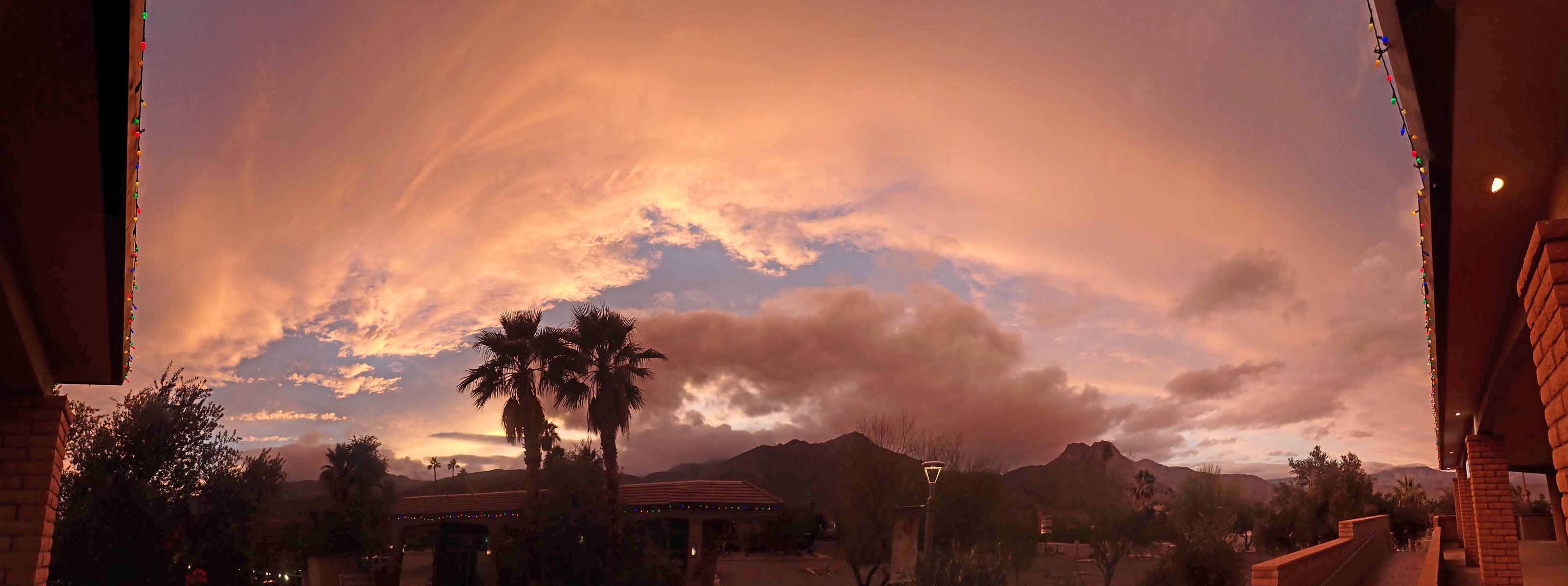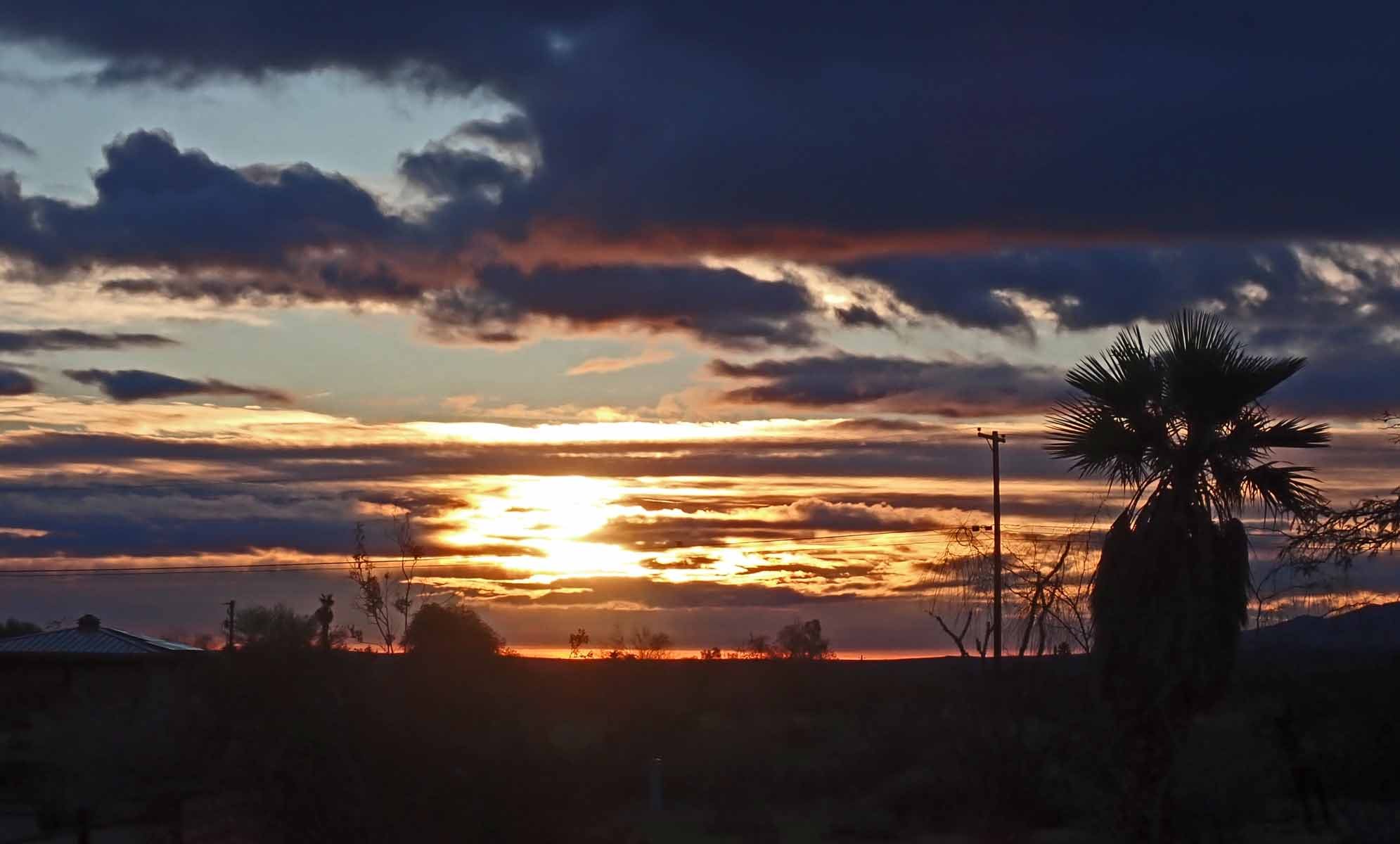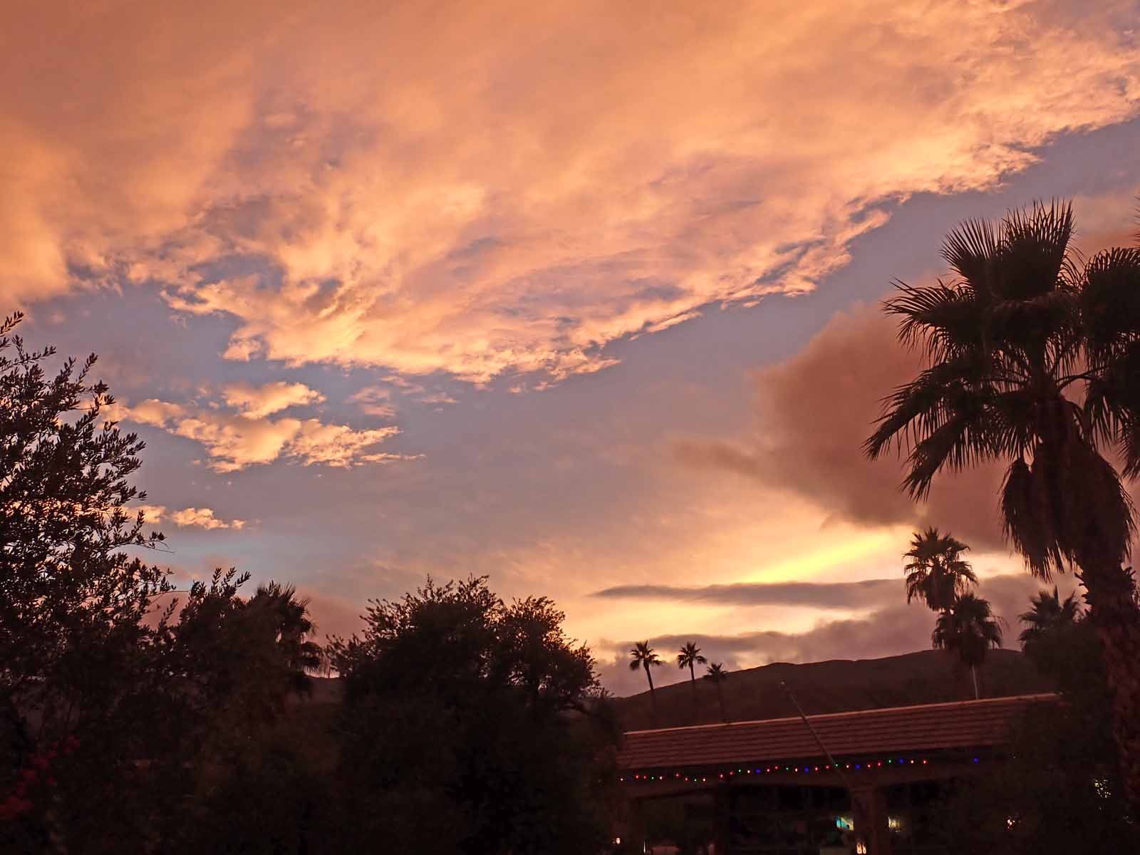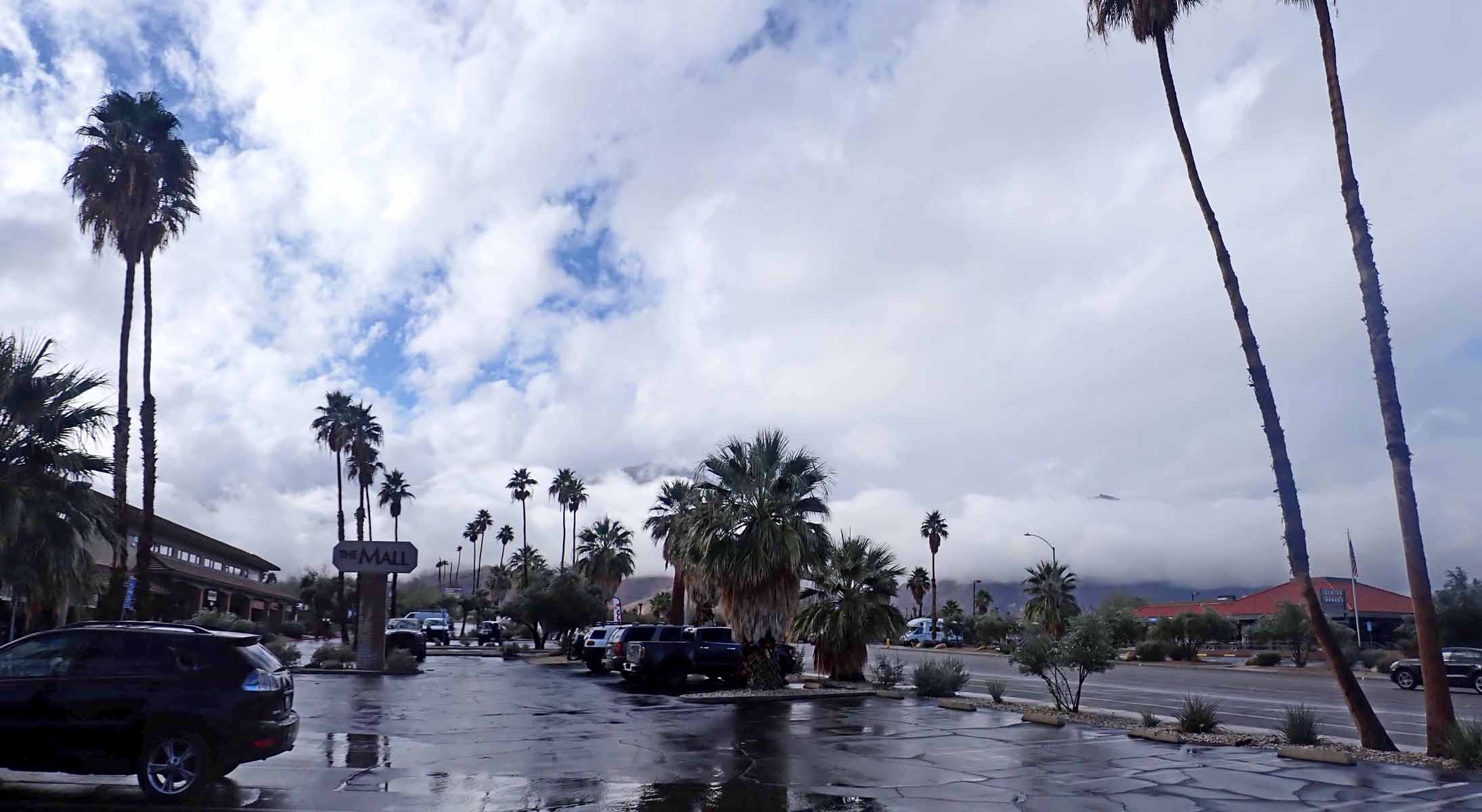 On the 1st, rained fairly hard most of the day, so stayed home & soaked up water leaking in sunroom & taking it easy. ![]() One of 6 bucket-full of water soaked up from sunroom ![]() Very wet out there! ![]() Low clouds all day ![]() ![]() ![]() Got a couple things from the store ![]() Webo is peak on left, San Ysidro Mtn on right ![]() A couple of ravens checking out dates in palm trees ![]() Noticed this bubble in ceiling paint with water dripping from it ![]() Placed ice chest to catch water from leak On the 2nd, a mostly cloudy day. We took doggies on 4 mile, 2.5 hour walk to town to drop off xmas card(3 kings) to Stacey (which her mom has been doing for decades). Kathy had bad back pain the whole way, so we had to rest a minute for every 2 minutes of walking. ![]() Sun trying to poke thru at sunrise, but clouds won out for the rest of the day ![]() |