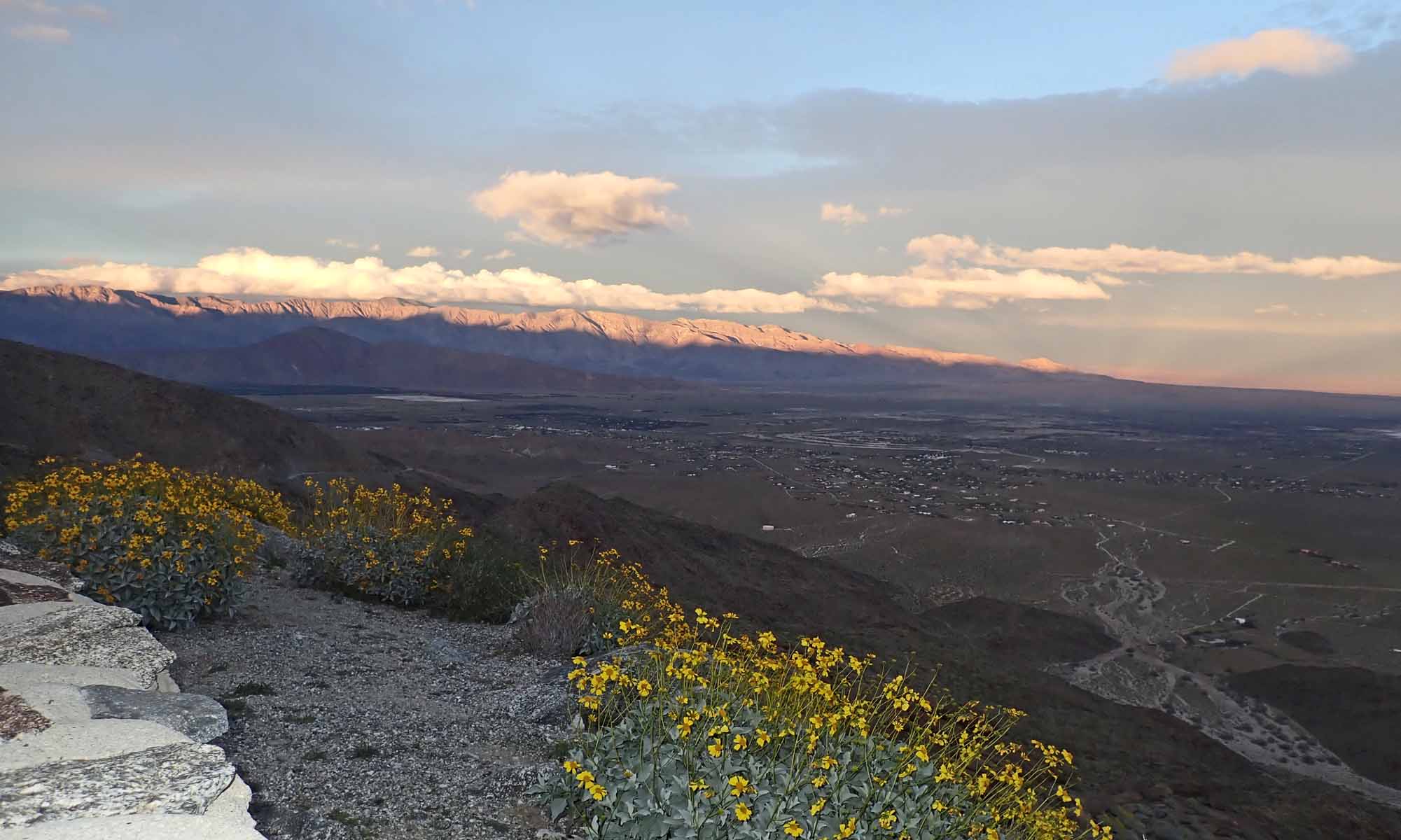 ![]() Downtown Borrego ![]() Desert dandelion & brown=eyed primrose ![]() Cool clouds to east - this is intersection of BS Rd & Tilting T On the 12th, a very full day at the office for Kathy. Jef did some work at Sewanee house. ![]() Weeded & located an irrigation leak ![]() Kathy called to let me know of a rapidly fading sunset ![]() On the 13th, we took doggies for a walk in Coyote Canyon - 1h 15m, about 2.5 miles. ![]() Our front yard on this partly cloudy day ![]() Starting our hike in Coyote Canyon ![]() Flowers were somewhat muted along the wash ![]() Some flowers managed to survive in the wash ![]() Pepper by a Jimson weed flower the size of her head ![]() Bird tracks in wash ![]() Lupine, cheesebush & brittlebush all blooming ![]() Weather behind Kathy actually dumped a fair amount at our house this afternoon - even had some hale! ![]() Weather ![]() ![]() Interesting crack patterns in the wash ![]() It actually started raining on us! ![]() Pepper puppy with rain spots in wash ![]() Desert dandelion & lupine blooms in the wash ![]() Broomrape parasite! ![]() Popcorn flowers ![]() Bank is taller than Pepper! ![]() Ground nearly all wet at this point ![]() Kathy wanted a pic of her all wet - she is slightly damp ![]() Desert sunflower, verbena & dune primrose ![]() Nearing Jeep, which I parked in the middle of the wash - fortuneately no flash flood ![]() View from Jeep after our post-hike "Miller time". Think the rain didn't fall on the Jeep on our hike ![]() Saw this cool flower-lined dirt road off of DiGiorgio - looked cooler before it got rained on ![]() ![]() On the 14th, drove Kathy to MD in Escondido & shopped on the way home. ![]() Craters in front yard indicate possible hail prior day ![]() At Big Rock house after meeting with Holley & Alvaro ![]() Kym forgot to tell me about SpaceX launch until 20 minutes afterward, but managed this pic at that time On the 15th, walked over & took a few pix in our neighborhood. Then did some weeding & irrigation repairs at Sewanee house and did Broken Arrow to Wagon loop - about 3 miles - with Kathy & puppies. Then dined at the Krazy Koyote with Pam & Jaime. ![]() Sunrise this morning ![]() ![]() ![]() ![]() ![]() ![]() ![]() ![]() Wispy clouds today partially obstructed the sun ![]() Across the street, looking back to our house ![]() ![]() ![]() Headed to sand dune at the end of Box S ![]() A few verbena in our area ![]() Started on this animal trail onto sand dune ![]() Looking S to Glorietta ![]() ![]() ![]() ![]() ![]() ![]() ![]() ![]() Looking along ridge of old sand dune ![]() A few purple mat blooms ![]() ![]() ![]() ![]() ![]() A few desert chickory ![]() ![]() Fremont pincushions ![]() ![]() ![]() ![]() ![]() ![]() Tried fixing a couple of broken irrigation lines at Sewanee ![]() This bush at our next door neighbor looks like it might be native to CA ![]() ![]() Really tall ocotillo on Broken Arrow ![]() This house has some unusual things in their front yard ![]() ![]() Dancing saguaro statue by a peyote statue ![]() Celebrating Jaime & Pam's 60th anniversary at the Krazy Koyote ![]() ![]() Eating dinner ![]() Jaime had dessert ![]() Leaving the restaurant |