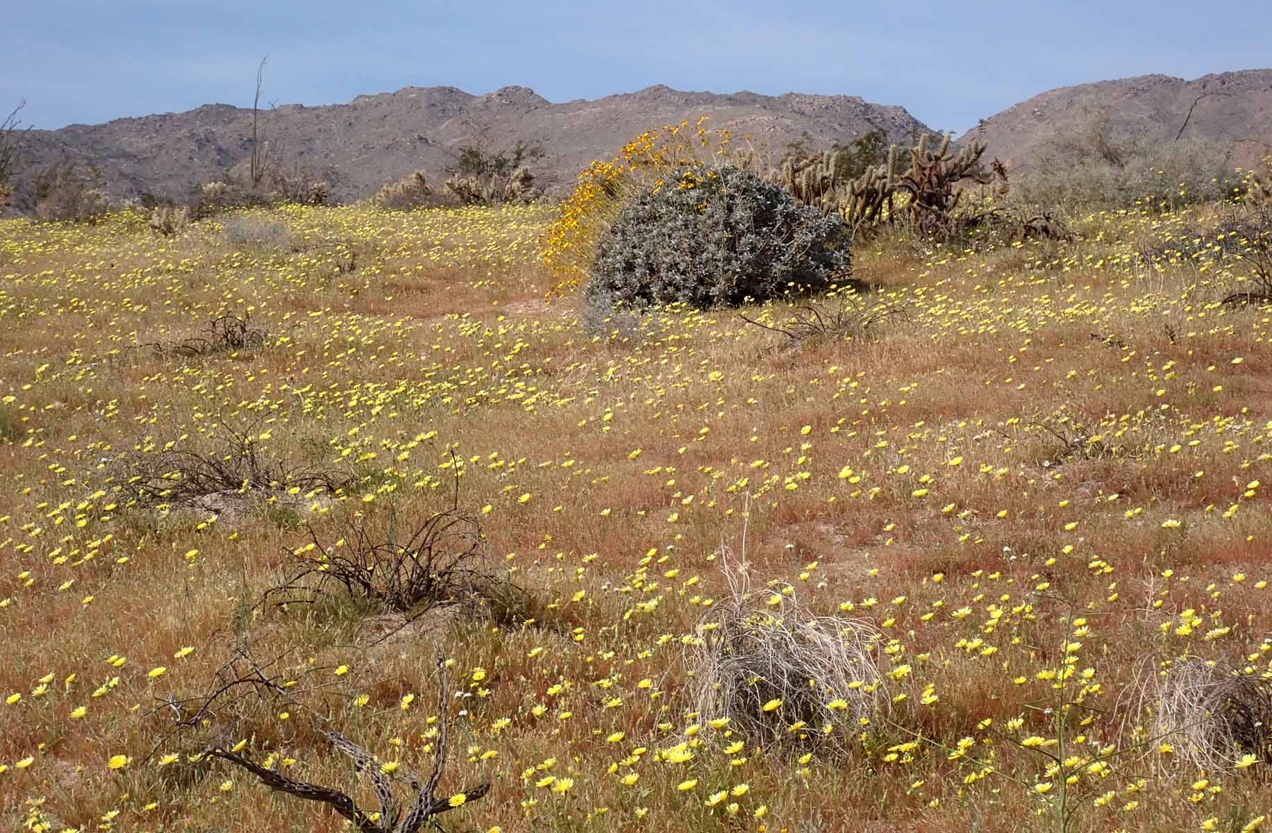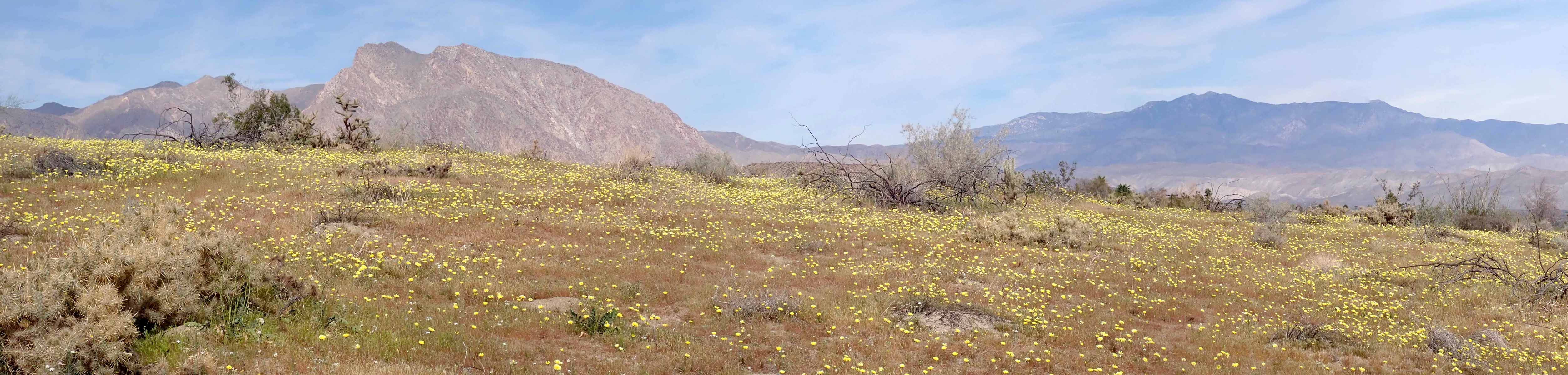 ![]() We dined on Canneloni this evening On the 25th, Kathy took it easy at home while Flaco & Jef hiked Ant Hill. Later that day, after Flaco left, Kathy & Jef walked the puppies on a new pole-line road for over 3 miles. Jef walked about 10 miles this day. ![]() Briefly stopped at Henderson Canyon flower fields before the hike ![]() ![]() Flaco at left in this panorama ![]() Flaco starting the hike ![]() Saw these 2 parasailors a few times on our hike ![]() One of, perhaps, 100 desert lily plants we saw on this hike ![]() Parasailors in front of Fonts Point(L) and Ant Hill(R) ![]() Actually saw these other hikers! ![]() Baby ant hills on way to Ant Hill ![]() Patch of 8 desert lilies ![]() We were about to walk on this dirt road when the 2 parasailors, following the road, passed right by us! ![]() ![]() ![]() ![]() Desert sunflower ![]() Dune primrose ![]() Lots of Sahara mustard as we near the hilly part of the hike ![]() ![]() ![]() Toro Peak ![]() Hit this fence line, but followed it a bit before crossing it at a low point, such as this ![]() Flaco getting something from pack ![]() ![]() When Flaco was about to put on more suntan lotion, I offered my bandana to protect his neck ![]() Flaco sporting his new headgear ![]() ![]() Desert lily bloom amid verbena field ![]() Flaco noticed this chuckwalla when it moved ![]() Another big patch of desert lily ![]() Creosote blooms with verbena field in background ![]() After reaching the ridge leading up to the peak ![]() Panorama with Ant Hill at left and flower field on south slope of ridge ![]() Upper reaches of this flower field are brown-eyed primrose ![]() ![]() Flaco approaching the peak ![]() ![]() ![]() Flaco at the peak. Jef called Julie & Kathy, but noone answered ![]() Badlands panorama from the peak ![]() Heading back down ![]() Heading into the Valley of Flowers ![]() ![]() ![]() ![]() ![]() Montezuma Grade & Borrego in distance. Green in middle ground might be mostly Sahara mustard ![]() Sahara mustard ![]() ![]() ![]() Summary of Ant Hill hike - about 6.5 miles ![]() Summary of hike with doggies - about 3.2 miles On the 26th, took it easy doing chores at home. On the 27th, Kathy returned to work. Jef walked to Tito's to pick up black Jeep, taking a new route. ![]() Meter still heading north ![]() After continuing x-country from Walking H, saw this abandonned wellhead ![]() Terrain to be traversed ![]() Chinchweed that bloomed so spectacularly in this area in October is all dead now ![]() Crossed this drainage choked with vegetation ![]() This might be the new invasive Valeria weed - this one about 5' tall ![]() Old pumphouse along DiGiorgio Rd ![]() Slab of an abandonned house ![]() Wellhead implies this was a pumphouse ![]() The drainage I crossed over emptied on east side of DiGiorgio Rd in a 6' deep trench - dammed up before enterring an even bigger 12' deep drainage - perhaps to have more water seep in here, not far from that pump house ![]() Where the main drainage comes from DiGiorgio - I believe this is when Palm Canyon creeks makes it this far ![]() Looking down the drainage channel - I believe this was made to prevent flooding at the Borrego Springs Resort ![]() Panorama of this channel ![]() Found this kite, which I later found out to be part of a $700 kite Steve had lost a year ago ![]() Turned out to be Steve's number ![]() Use your imagination.... No Trespassing, perhaps? ![]() Kathy had me look at the sunset this evening - just caught the tail end of it ![]() ![]() ![]() ![]() On the 28th, drove Kathy to MD in Rancho Mirage. We went on an hour hike from city hall afterwards, before shopping and driving home. ![]() Sunrise this morning ![]() Starting hike above the city hall ![]() City hall is composed of buildings to the left ![]() Sitting at the first lookout ![]() Next leg of hike took us to a water tank where we turned and came back ![]() Back at the lookout ![]() Words of wisdom ![]() Our viewing bench ![]() Flowers at Henderson Canyon as the sunset continues to fade ![]() ![]() ![]() ![]() On the 29th, another work day for Kathy. Jef did some weeding at Sewanee. ![]() Sunrise this morning ![]() On the 30th, did chores at home all day. On the 31st, packed up and drove to Niland to get wind chimes Kathy couldn't get weekend before and camped at Bashford's Hot Springs Resort. ![]() At Bashfords - we set up tent before heading to Bombay Beach ![]() We parked at "Last car that parked here is still missing" space, as Steve was packing up - managed to buy the wind chimes ![]() Steve bagging chimes for Kathy ![]() ![]() Tesseract projection ![]() Setting sun ![]() ![]() ![]() Roon rising about porta-potties ![]() Sun setting at left in this panorama with moon rising at right ![]() ![]() We spent an hour or so listening to a great band playing at the "trash dance" this evening at Bashford's rec room | |||||||||||||||||||||
