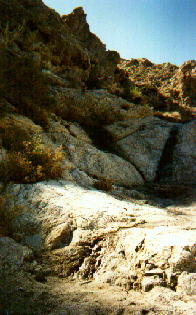 | Blue Spring. Most of water is trapped and placed in a sheep guzzler tank, but a little runoff is seen here. Blue Spring is the only spring in the entire Vallecitos range! This is 1.5 hours into hike. |